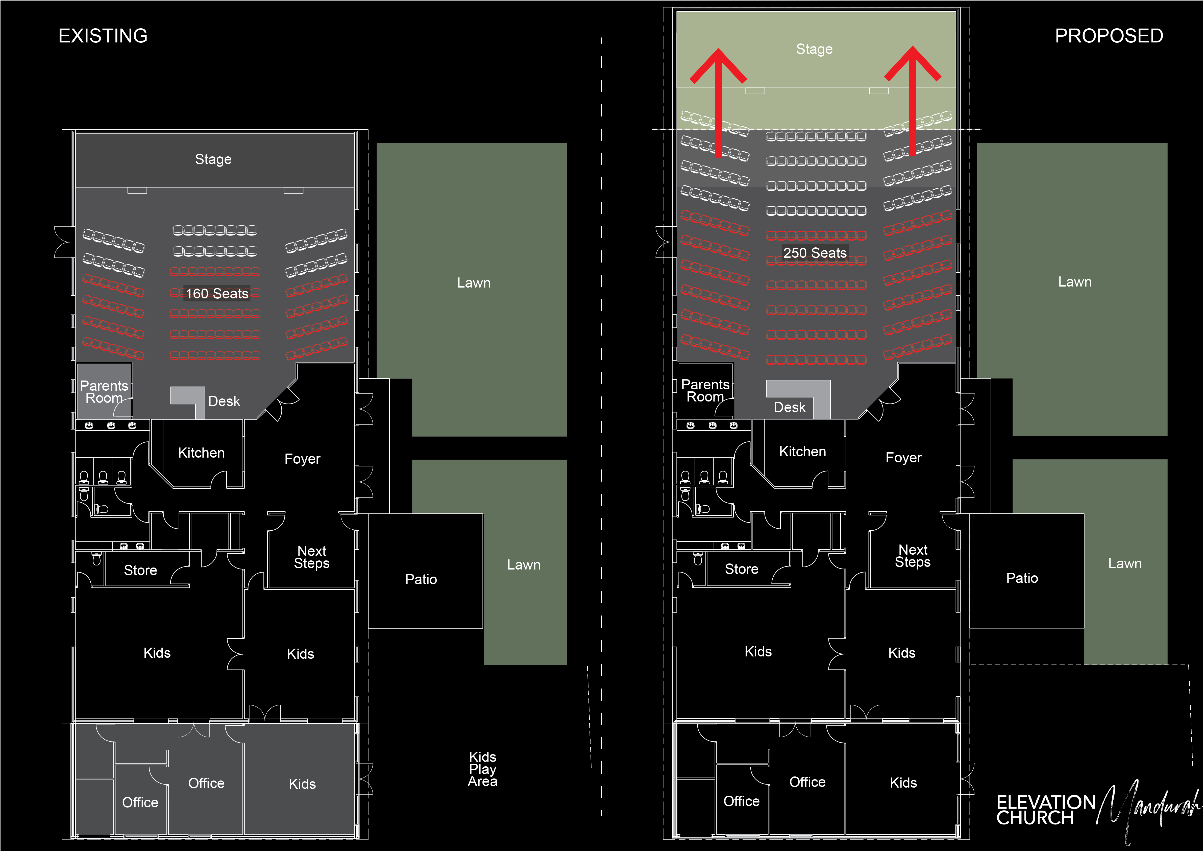 We have seen a significant amount of growth in our services over the last season and our desire is to make room for more. Our goal is to expand our current auditorium so that it can seat 250 people. The current capacity is 160.